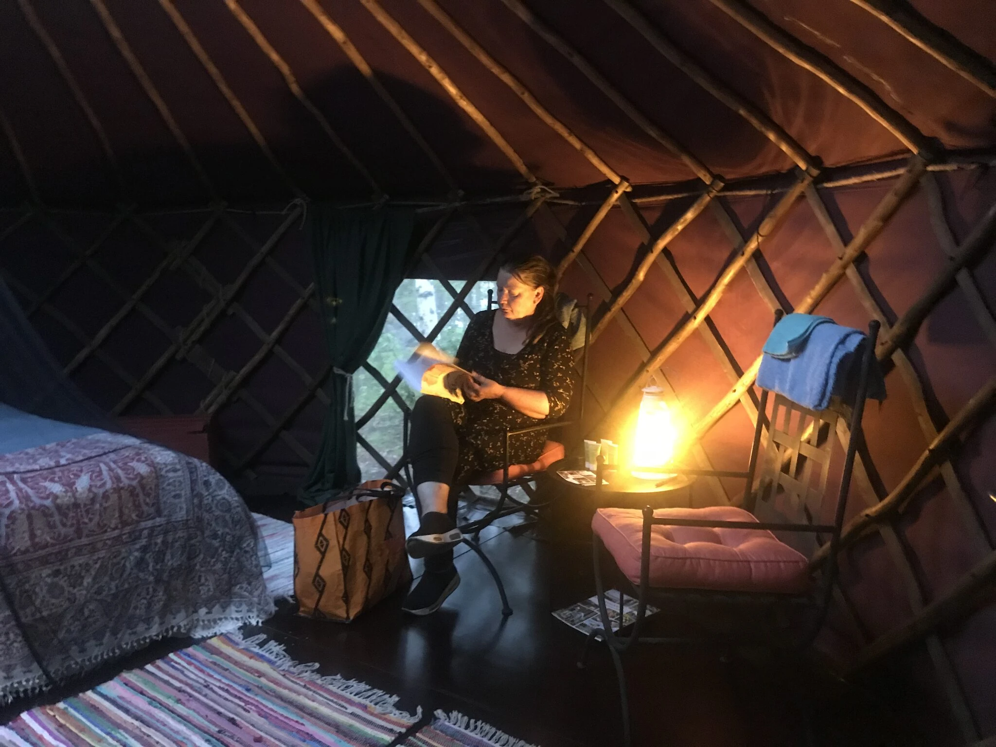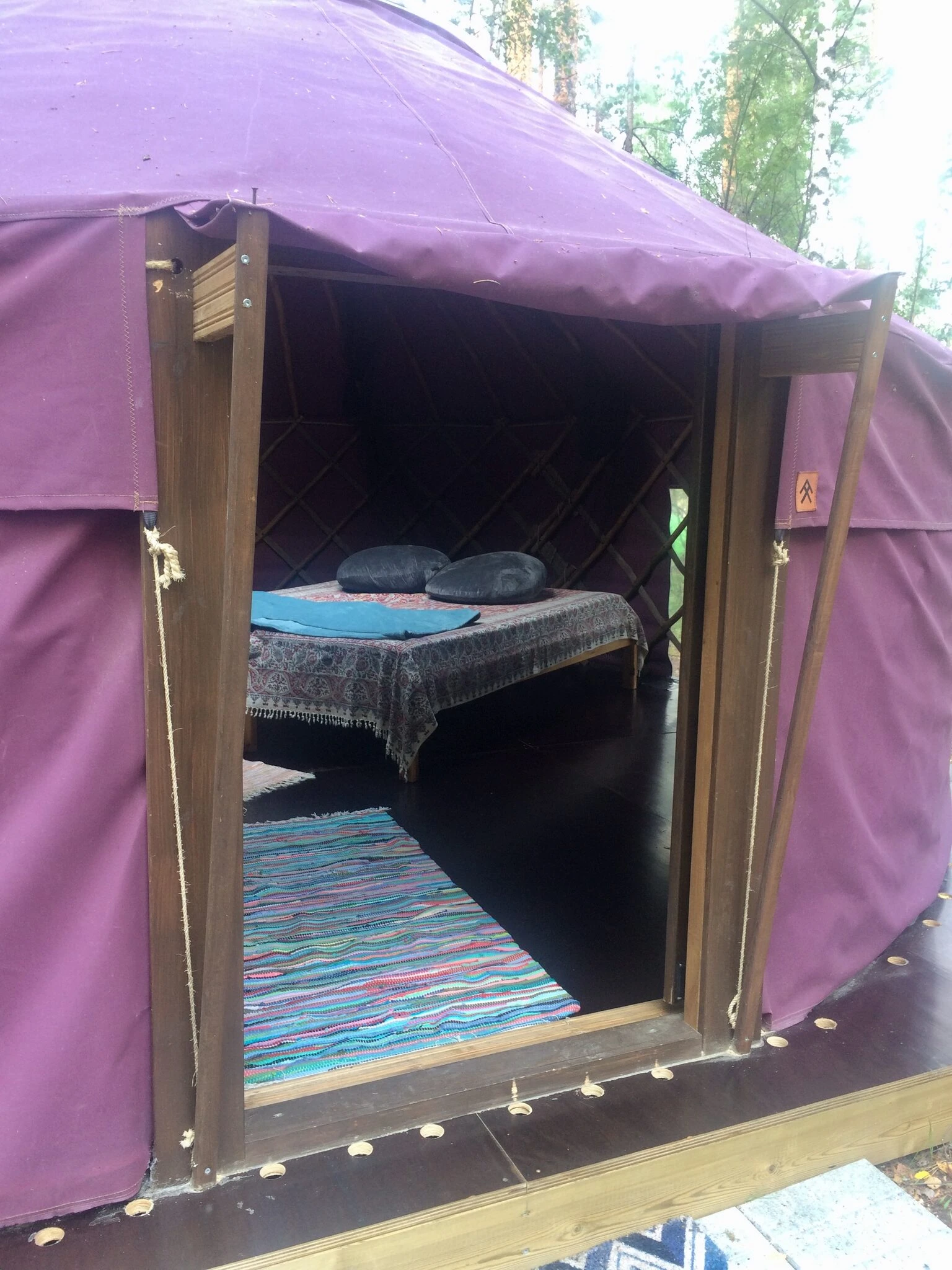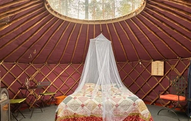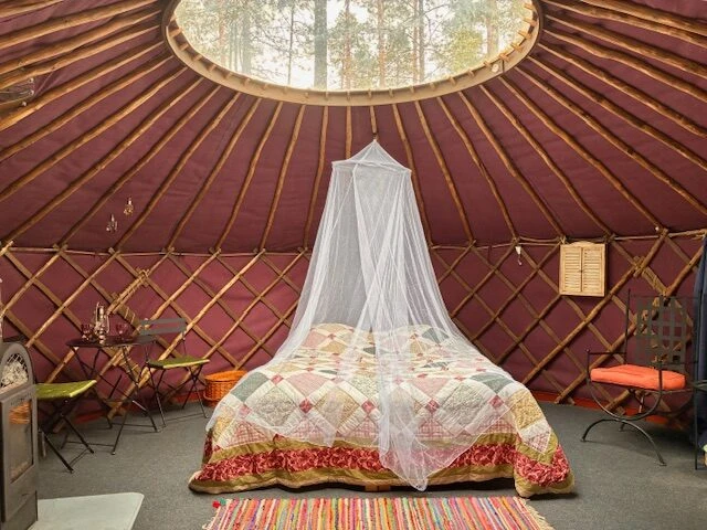 Jurttamme on ainutlaatuinen. Se ovat tehty Linkkumyllyyn tilaustyönä käsin ja halkaisja on 5-4 metriä. Kattoikkunasta näet mäntyjen latvat ja iltataivaan. Jurtta on aina kahdelle ja niissä on kamiina. Jurtan hintaan kuuluu aamiainen kahdelle ja lakanat. Käytössä on ekovessa; rannassa puutarhan puolella on myös WC ja suihkuhuone. Päätalon vanhaa rantasaunaa voi myös vuokrata tilauksesta. Jurttaan ei saa tuoda lemmikkejä. Pihapiirissä on käytössäsi myös laavu, jossa voi grillata iltapalaa.